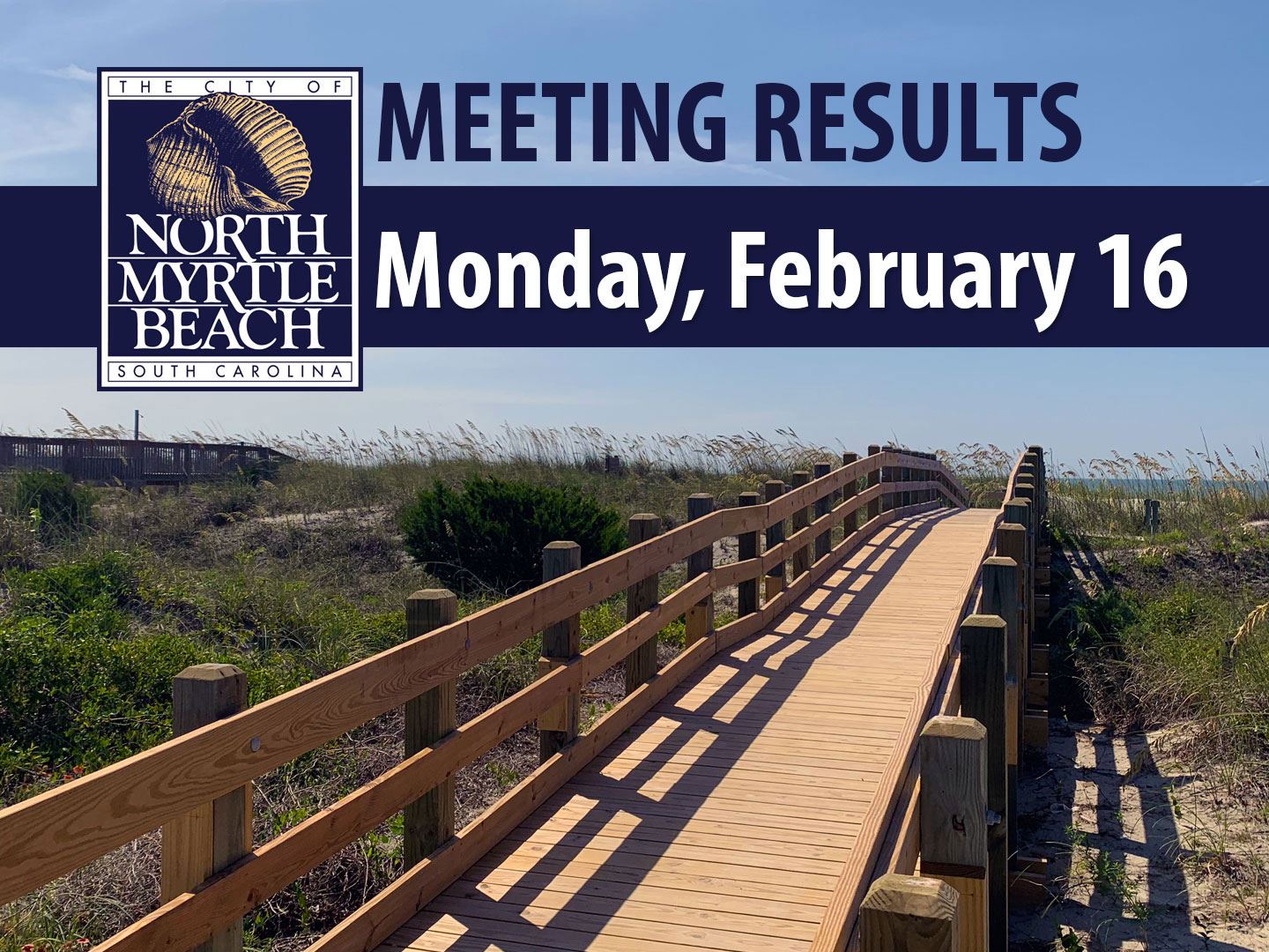 NORTH MYRTLE BEACH, S.C. -- The North Myrtle Beach City Council met in a regularly scheduled meeting on Monday, February 16, at 6:00 PM at City Hall.